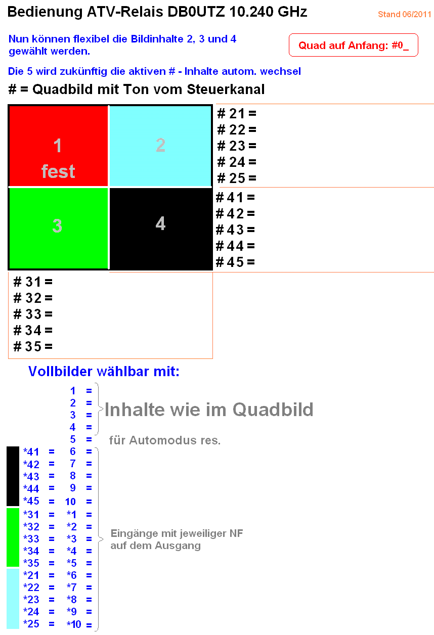 Mit der # können je 5 Eingänge auf die Quadfenster 2, 3 und 4 geschaltet werden. (siehe Bild)